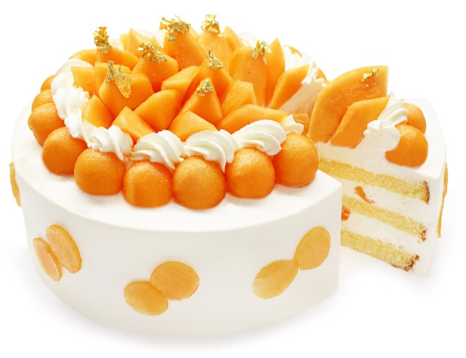 芳醇な香りでみずみずしく甘い「マスクメロン」を、 生クリーム、スポンジとあわせて飾り付けました。 「マスクメロン」を存分にお楽しみ頂けるショートケーキです。
