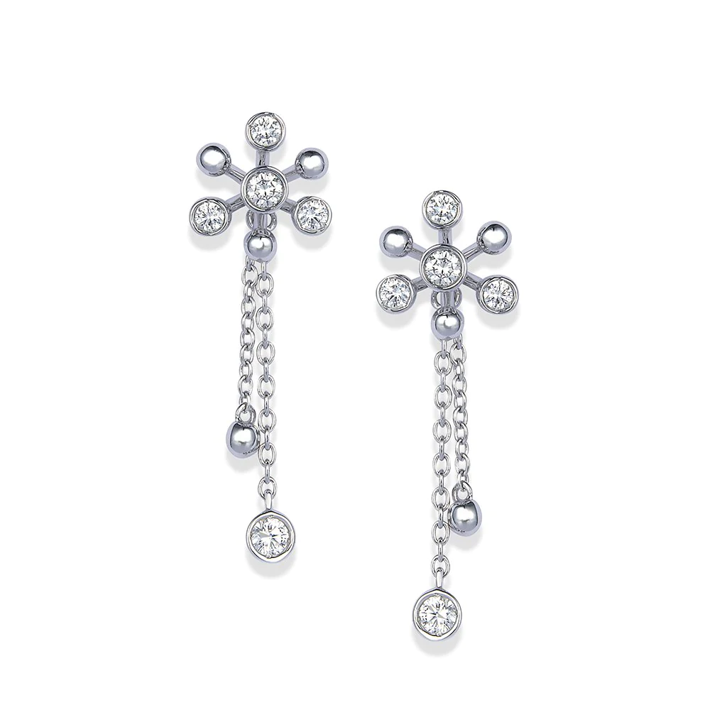 中央から放射線状に伸びるバーに、大小異なるダイヤモンドをセッティングした