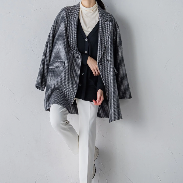 テーラードのハーフ丈はゆったりめシルエットでモードな印象に。
