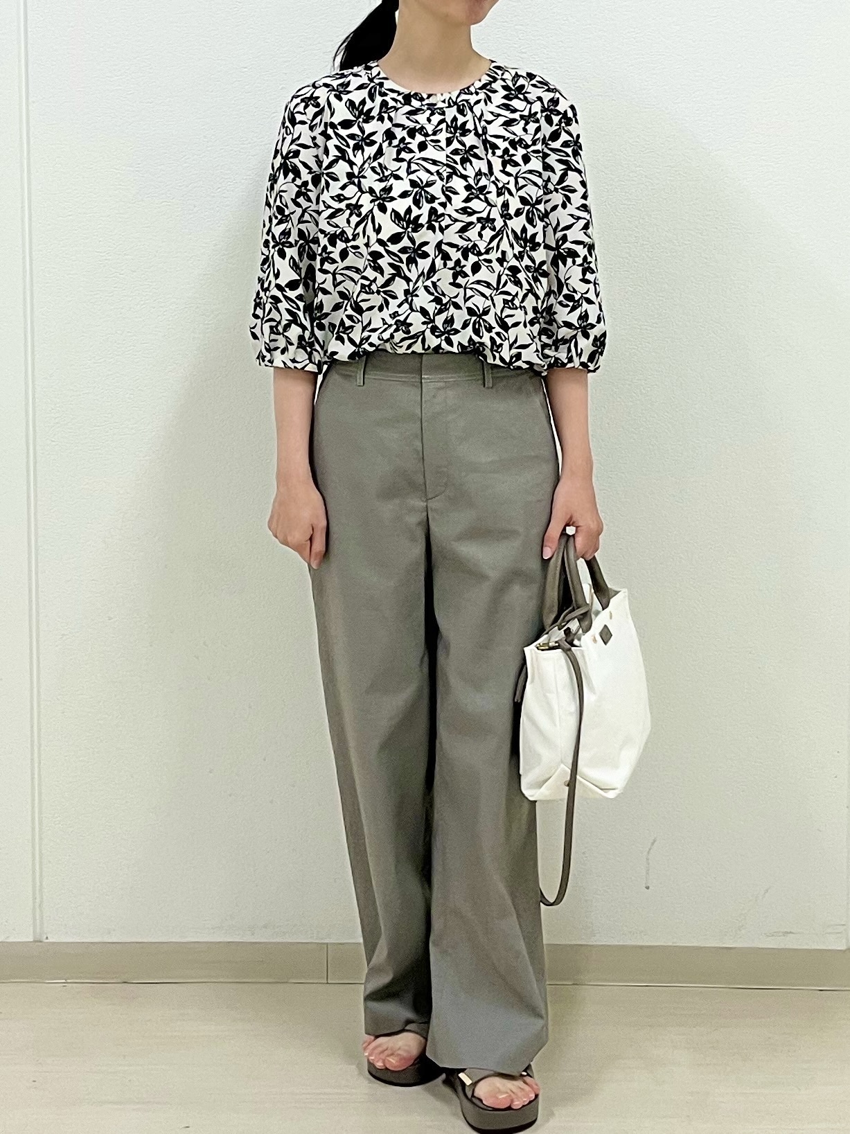 夏らしい存在感のあるボタニカル柄ですが、大人な印象のカラーと配色で着こなしやすいです。