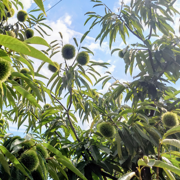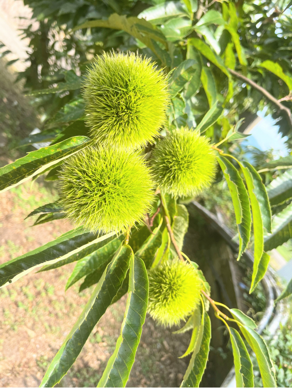 容赦なく照りつける太陽のもと、栗たちはすくすくと育っていました。