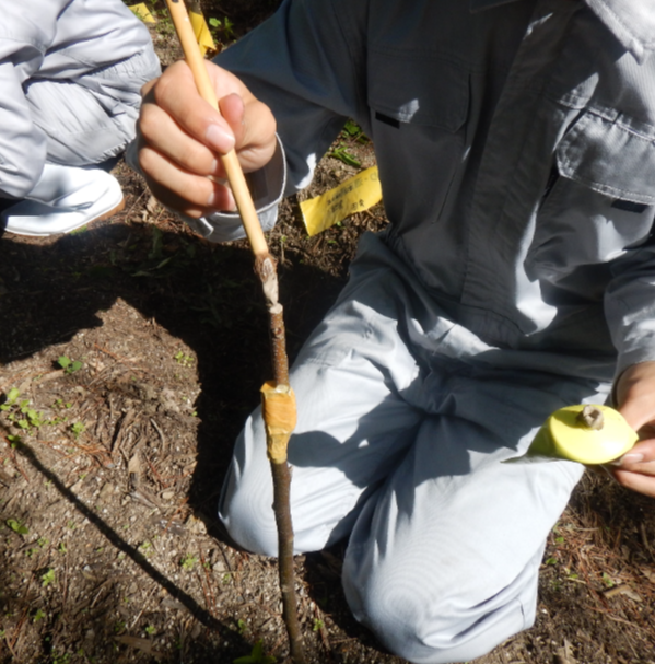 接ぎ木繁殖といって、栗をはじめ、ほとんどの果樹がこのようにして繁殖されています。