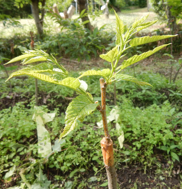 こうして1~2年くらい育てた栗の枝に、銀寄栗の枝を接ぎ合わせると、銀寄栗の苗木が再生できます。