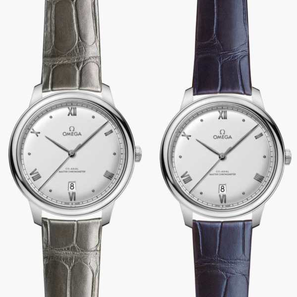 また上記のようにベルトの色を変えると更に時計の楽しみ方が広がります。(左がグレーアリゲーター 右がブルーアリゲーターです。また他色の革ベルトはご注文にて承ります)
