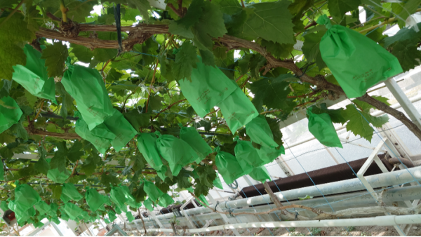 私が学校に行った時はまだまだ成長途中だったシャインマスカットやぶどうたちでしたが