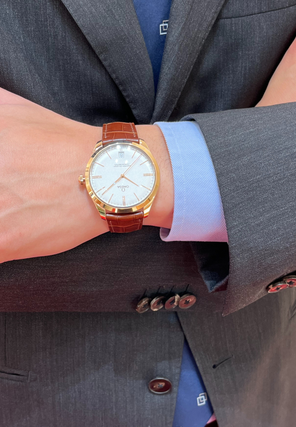 ダークトーンのお召し物またはスーツに合わせると18Kセドナゴールドがより美しく上品な佇まいになります。