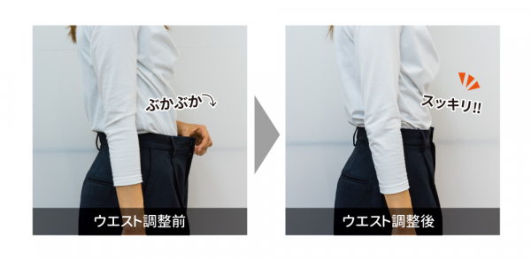 体型の変化で、ウエストがきつくなったスカートも、お直し方法などご提案させていただきます。商品をお持ちになりスタッフまでお気軽にご相談ください。(※ウエスト出しの場合、元の縫い目をほどいて広げるため、素材によっては出し跡が残る場合もあります。ご了承ください。)