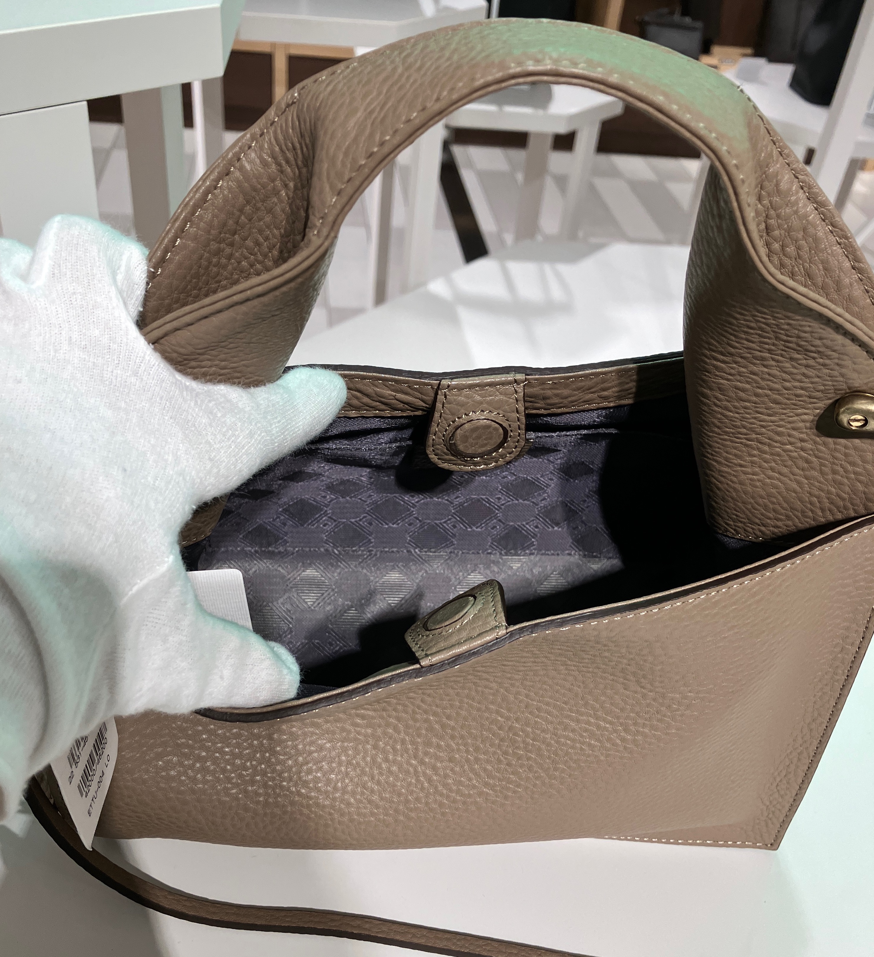 ハンドルのデザインが「エティアム」らしいショルダーバッグ👜