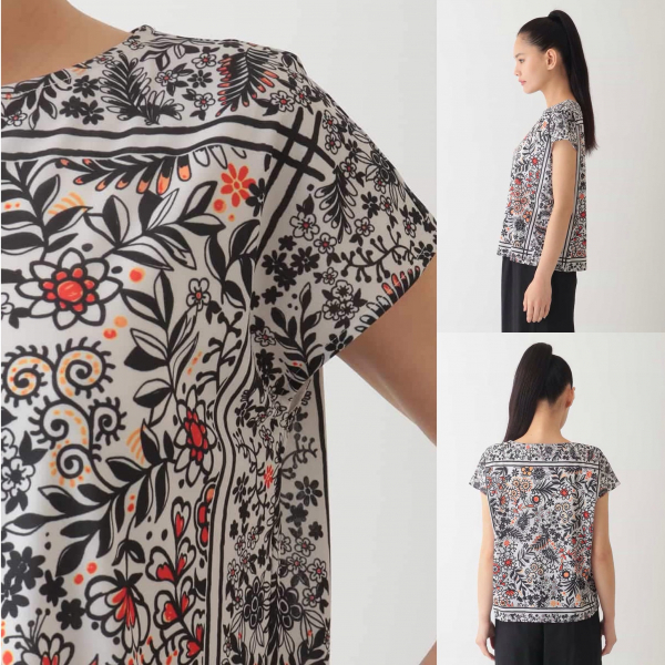 今回はスカーフ風の小花プリントが愛らしいコンパクトなカットソーをご紹介します♪
