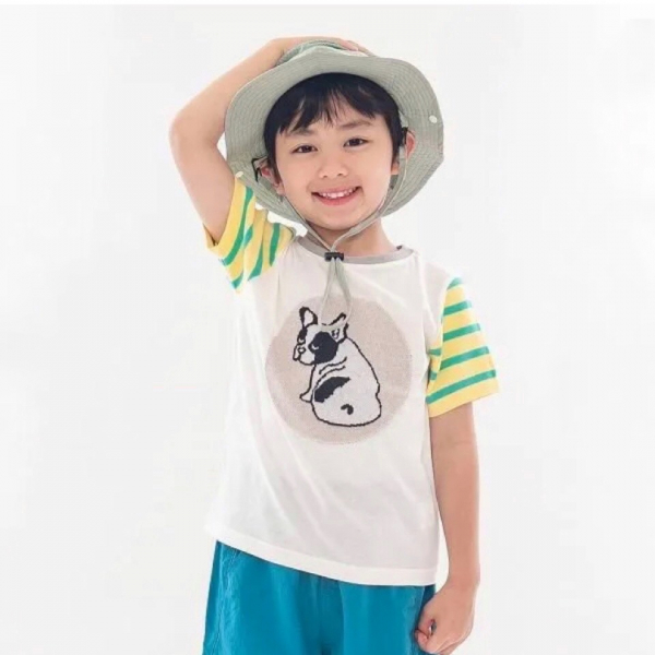 フレンチブルドック🐶柄が佇んでいるニット生地の異素材Tシャツ👚