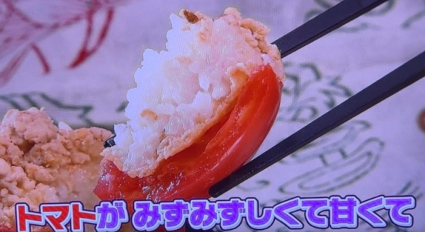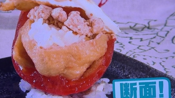 熊本産のトマトにおいなりさんが入っていまして、