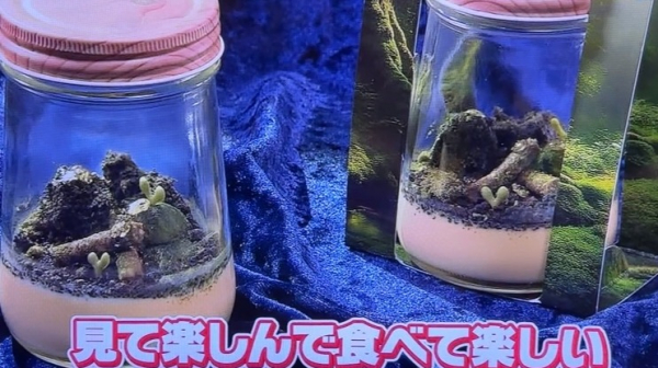 ⋄樋口「こちら、水苔というお庭のプリンです!宇治抹茶を使った苔テラリウムです」