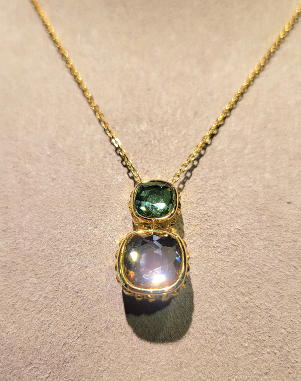 ペンダントとピアスはRe Createdアイスブルーとヴィンテージローズの2色にサイドのジョンキルカラーがアクセントになっております🩵🩷💛