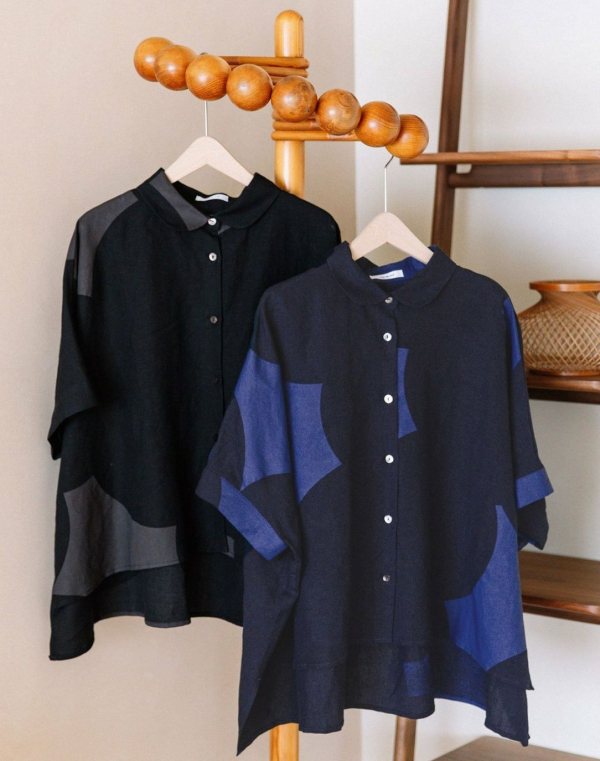 ワイドな身巾でサイドが落ちるラフなシルエットに、小さめな丸衿で上品さもプラスしました。