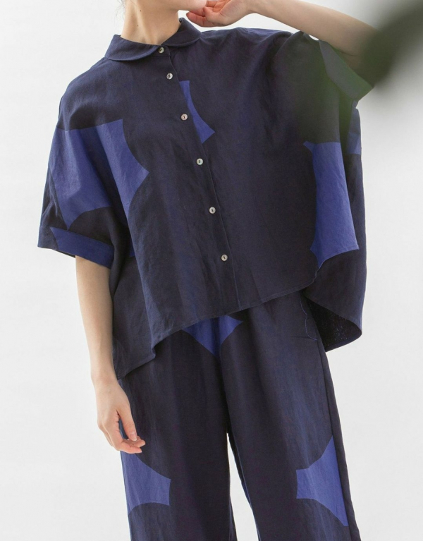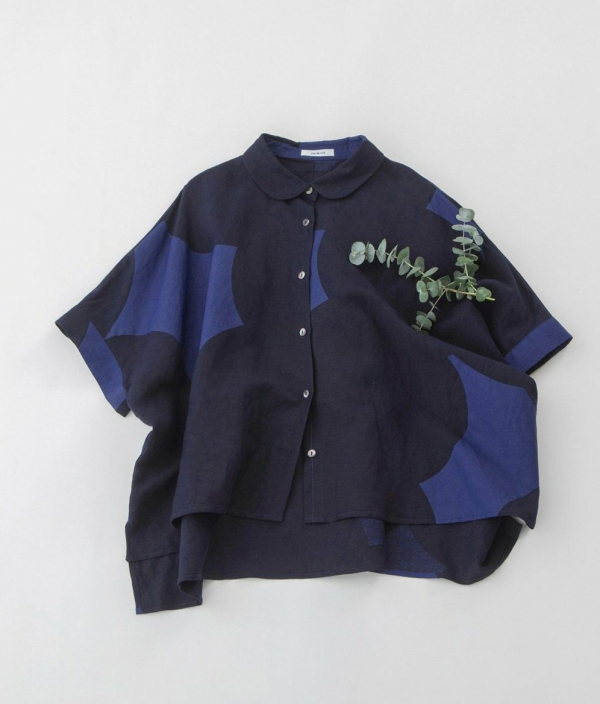 【Cielリネンレーヨンもくもくプリントシャツ】