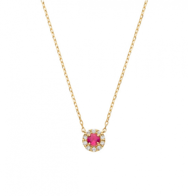ルビーをメレダイヤモンドで取り巻いた、ベーシックでさりげなくエレガントなデザイン🌱