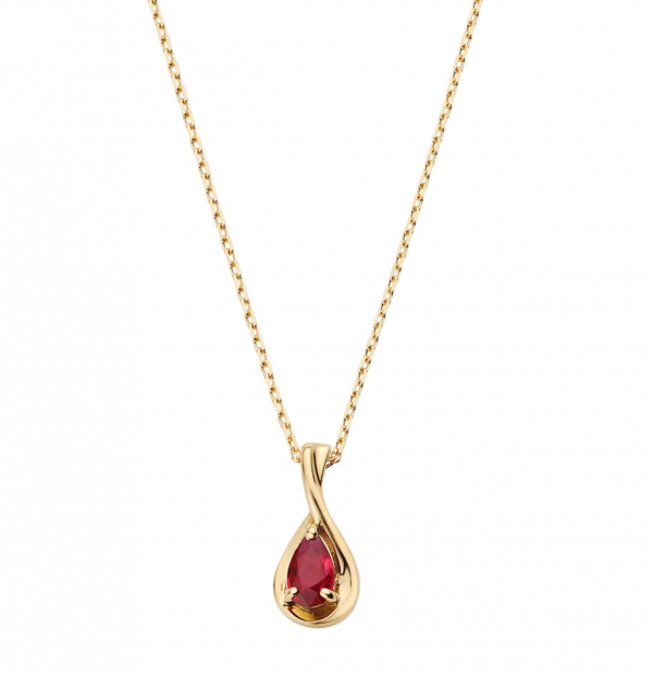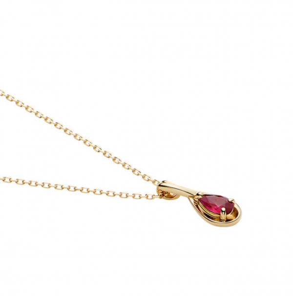 ペアシェイプのルビーをイエローゴールドでぐるっと囲ったネックレス✨