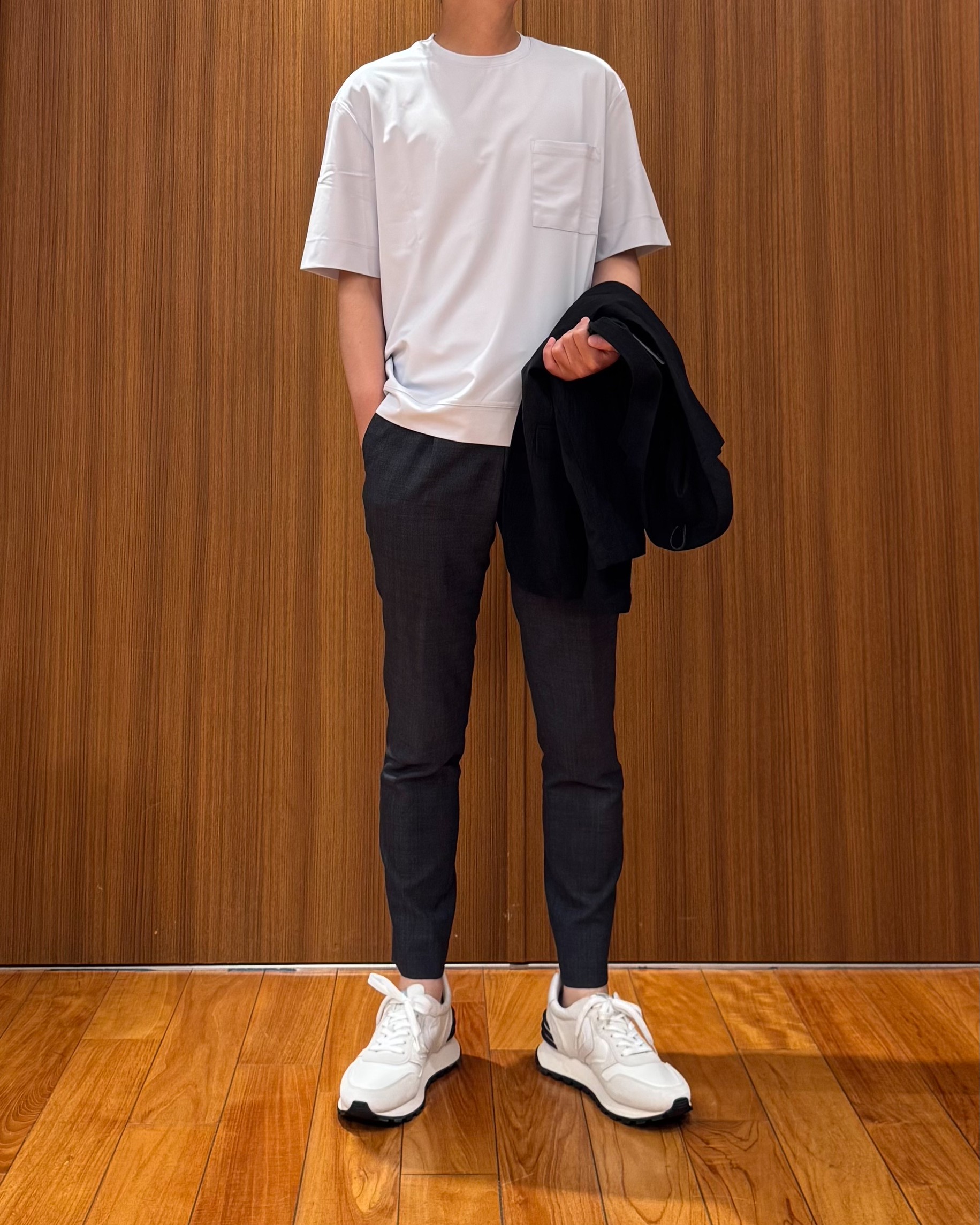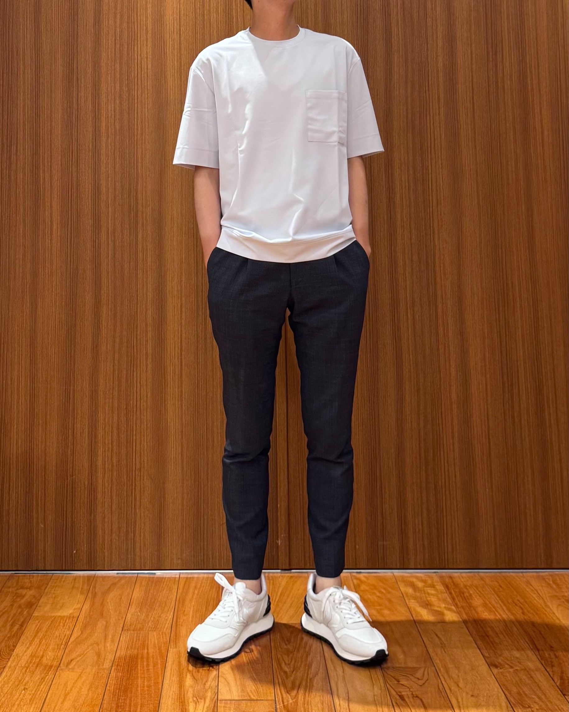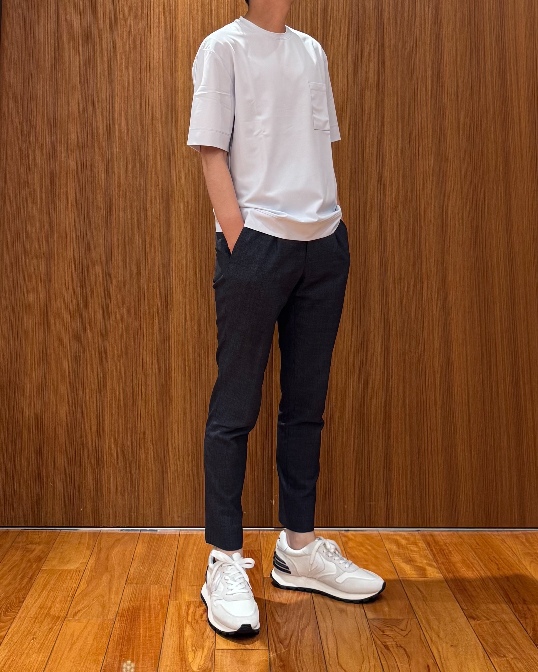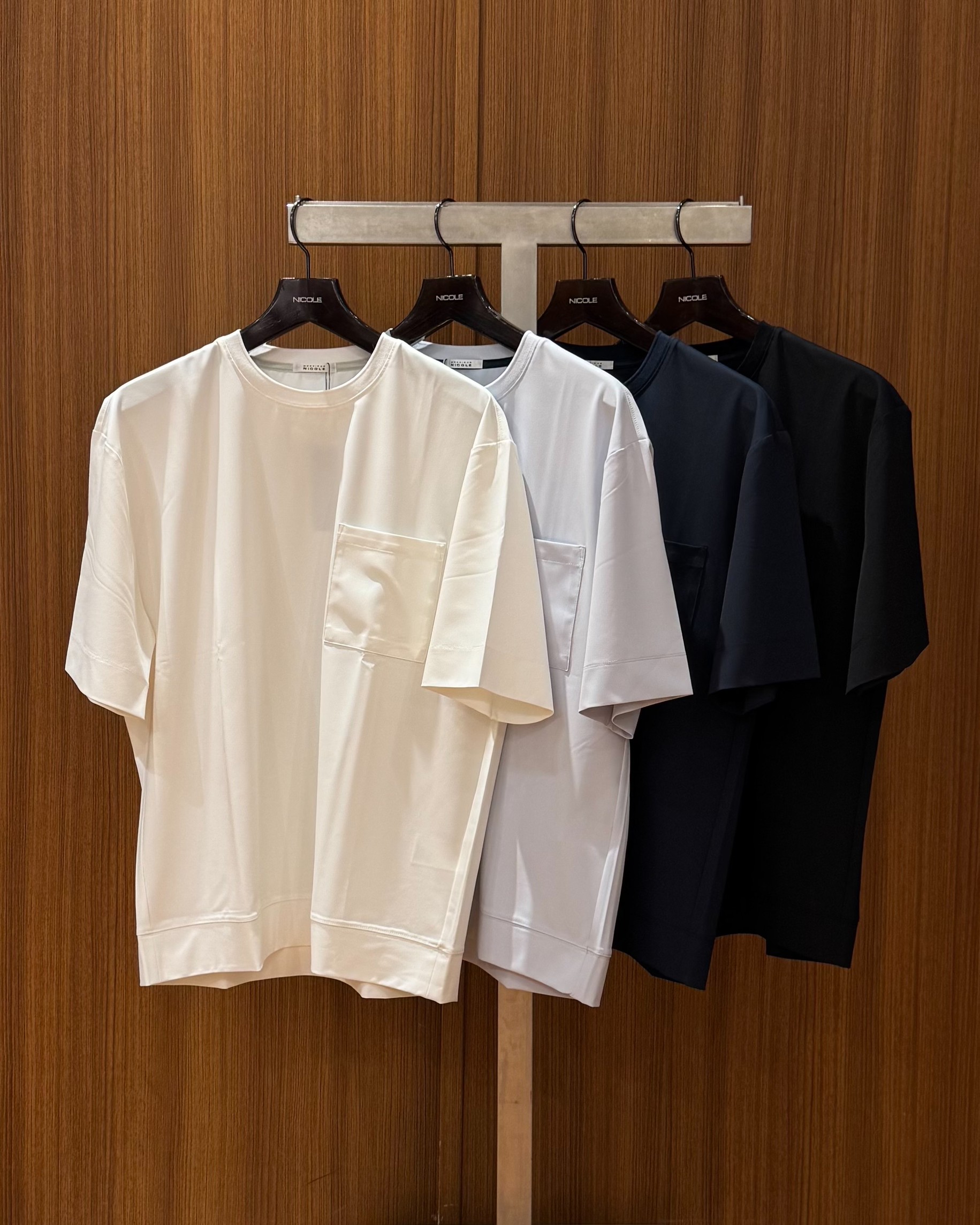 ポリウレタンを混紡したストレッチ性抜群のTシャツです。胸ポケットのデザインとムッシュニコルでは新しいオーバーサイズシルエットです。